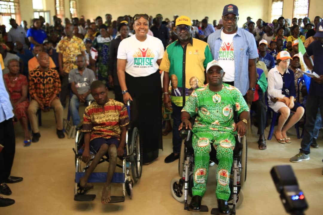 The compassionate disposition of Governor Umo Eno, has once again been demonstrated, when he gifted young disabled Master Usen Jones of Ikot Isong Village, in Etinan, a wheelchair during the Arise Free Food Distribution exercise, held at the council headquarters, on Monday, September 1, 2025.