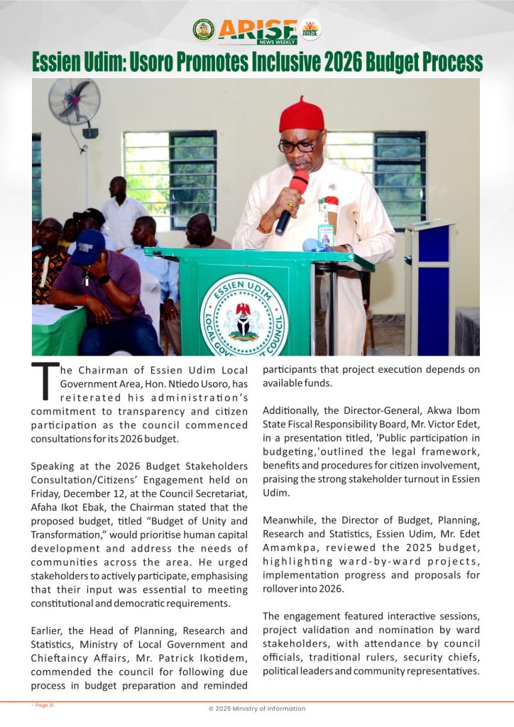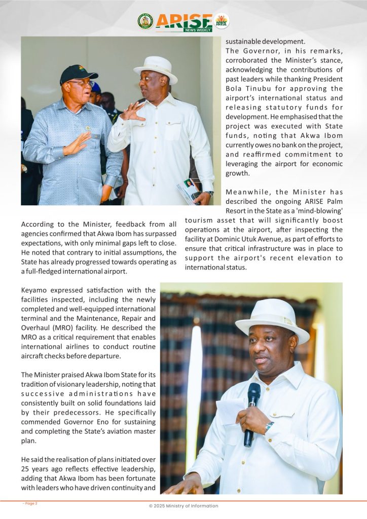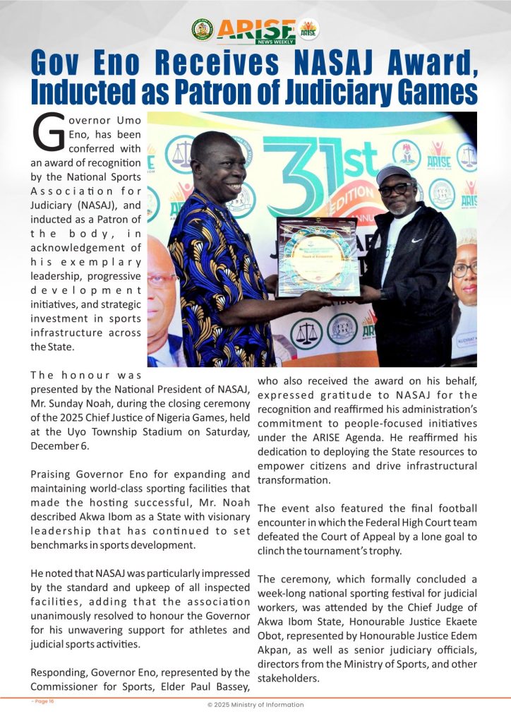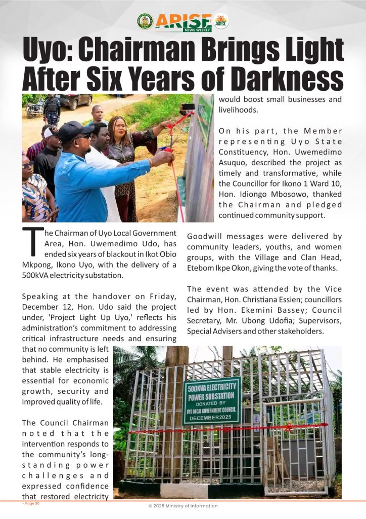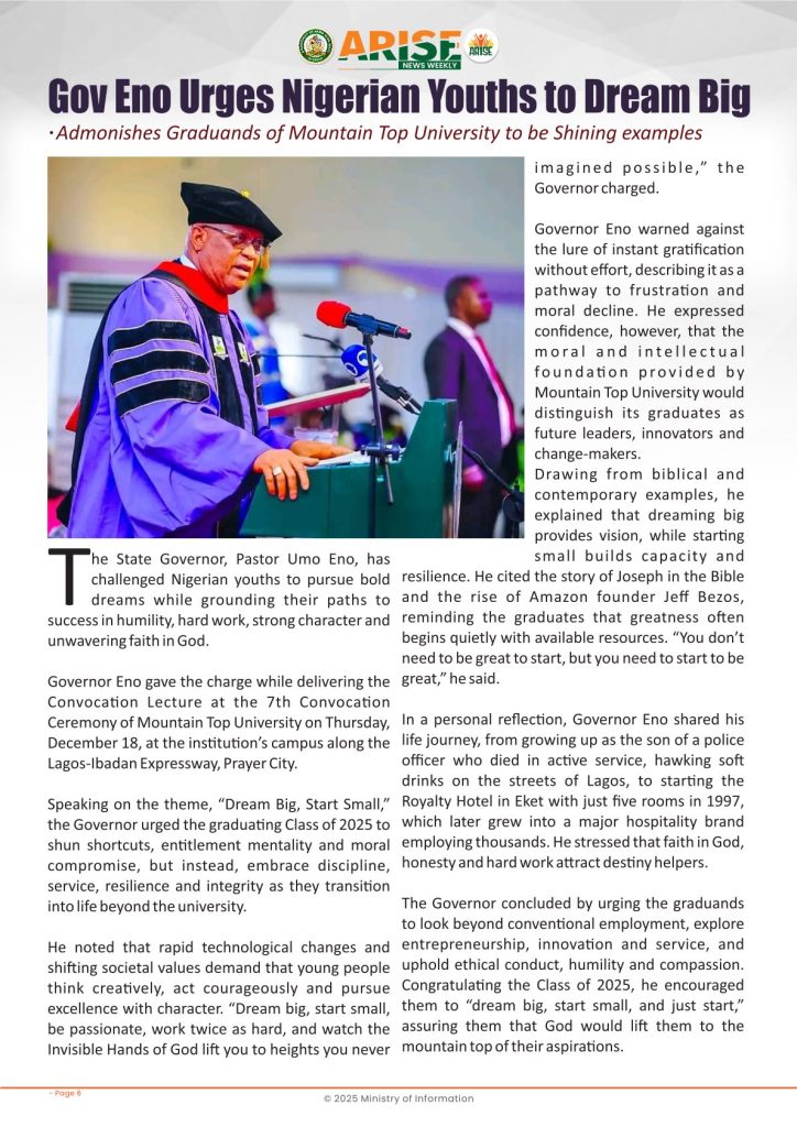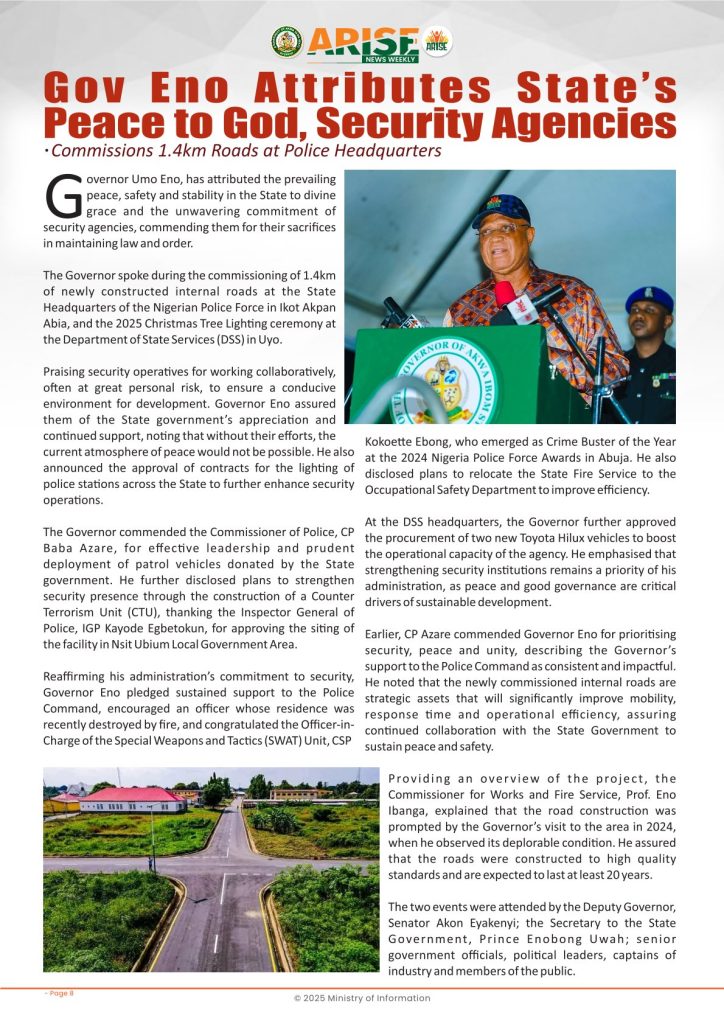 Ministry of InformationWeekly Magazine ARISE News Weekly December 11 – December 17 , 2025 Vol. 1 No. 36 By: Editor Date: December 19, 2025 ARISE NEWS WEEKLY December 8, 2025 VOL_35-10Download Previous articleARISE News Weekly December 4 – December 10, 2025 V o l . 1 No. 35Next articleARISE News Weekly December 18 – December 25, 2025 Vol. 1 No. 37 Editorhttp://blog.akwaibomstate.gov.ng LEAVE A REPLY Cancel reply Comment: Please enter your comment! Name:* Please enter your name here Email:* You have entered an incorrect email address! Please enter your email address here Website: Save my name, email, and website in this browser for the next time I comment. Yes, add me to your mailing list Share post: FacebookTwitterPinterestWhatsApp SubscribeI want inI've read and accept the Privacy Policy. Popular ARISE News Weekly – December 25 – December 31, 2025 Vol. 1 No. 38 ARISE News Weekly December 18 – December 25, 2025 Vol. 1 No. 37 ARISE News Weekly December 4 – December 10, 2025 V o l . 1 No. 35 ARISE News Weekly November 27 – December 3, 2025 V o l . 1 No. 34 Umanah Commends First Lady’s Office for Advancing Rural Devt Through Water Project in Abak More like thisRelated ARISE News Weekly – December 25 – December 31, 2025 Vol. 1 No. 38 Editor - December 31, 2025 ARISE NEWS WEEKLY DECEMBER 30, 2025 VOL_38-1Download ARISE News Weekly December 18 – December 25, 2025 Vol. 1 No. 37 Editor - December 26, 2025 ARISE NEWS WEEKLY DECEMBER 24, 2025 VOL_37Download ARISE News Weekly December 4 – December 10, 2025 V o l . 1 No. 35 Editor - December 11, 2025 ARISE NEWS WEEKLY December 8, 2025 VOL_35Download ARISE News Weekly November 27 – December 3, 2025 V o l . 1 No. 34 Editor - December 3, 2025