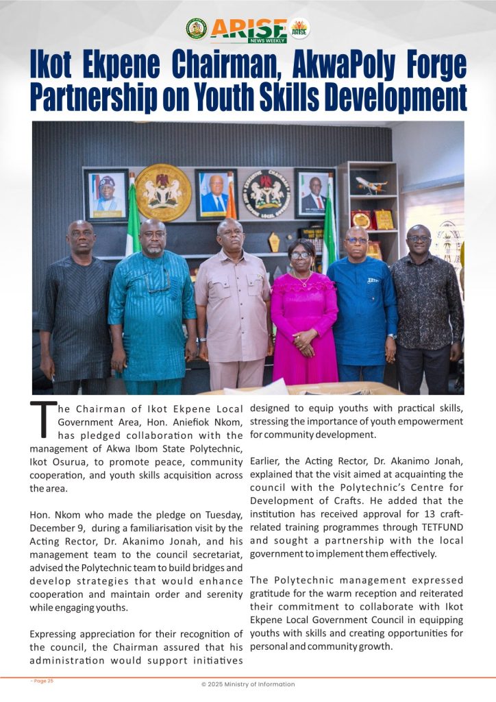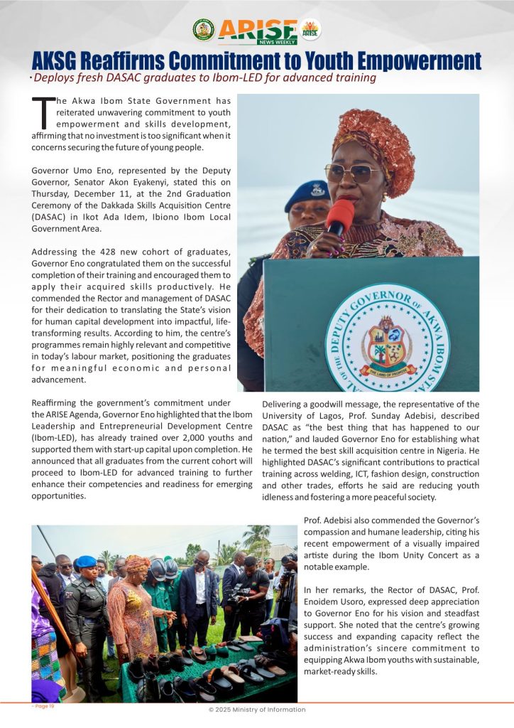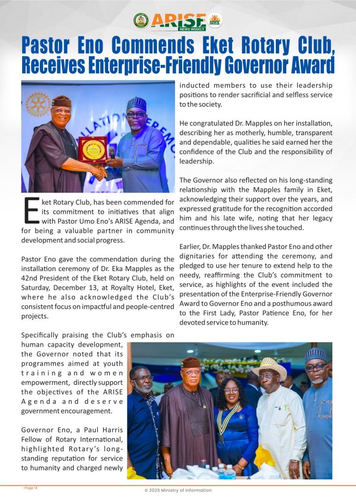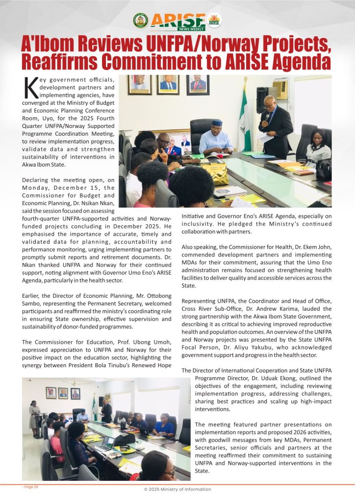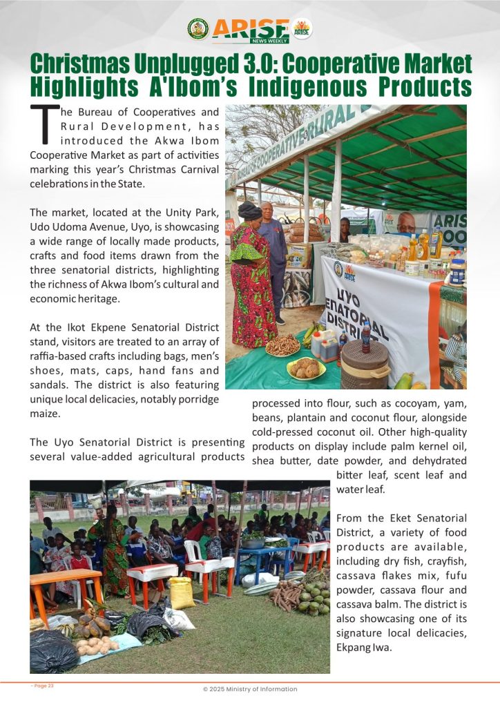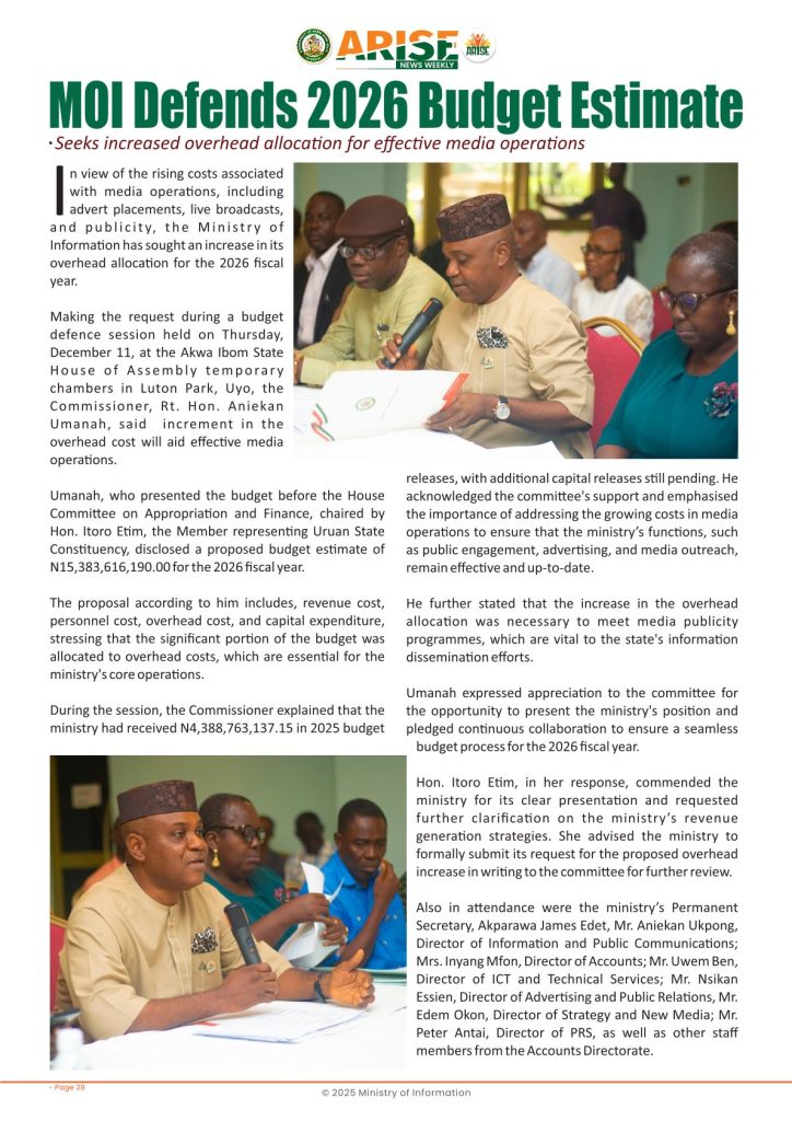 Ministry of InformationWeekly Magazine ARISE News Weekly December 11 – December 17 , 2025 Vol. 1 No. 36 By: Editor Date: December 19, 2025 ARISE NEWS WEEKLY December 8, 2025 VOL_35-10Download Previous articleARISE News Weekly December 4 – December 10, 2025 V o l . 1 No. 35Next articleARISE News Weekly December 18 – December 25, 2025 Vol. 1 No. 37 Editorhttp://blog.akwaibomstate.gov.ng LEAVE A REPLY Cancel reply Comment: Please enter your comment! Name:* Please enter your name here Email:* You have entered an incorrect email address! Please enter your email address here Website: Save my name, email, and website in this browser for the next time I comment. Yes, add me to your mailing list Share post: FacebookTwitterPinterestWhatsApp SubscribeI want inI've read and accept the Privacy Policy. Popular ARISE News Weekly – December 25 – December 31, 2025 Vol. 1 No. 38 ARISE News Weekly December 18 – December 25, 2025 Vol. 1 No. 37 ARISE News Weekly December 4 – December 10, 2025 V o l . 1 No. 35 ARISE News Weekly November 27 – December 3, 2025 V o l . 1 No. 34 Umanah Commends First Lady’s Office for Advancing Rural Devt Through Water Project in Abak More like thisRelated ARISE News Weekly – December 25 – December 31, 2025 Vol. 1 No. 38 Editor - December 31, 2025 ARISE NEWS WEEKLY DECEMBER 30, 2025 VOL_38-1Download ARISE News Weekly December 18 – December 25, 2025 Vol. 1 No. 37 Editor - December 26, 2025 ARISE NEWS WEEKLY DECEMBER 24, 2025 VOL_37Download ARISE News Weekly December 4 – December 10, 2025 V o l . 1 No. 35 Editor - December 11, 2025 ARISE NEWS WEEKLY December 8, 2025 VOL_35Download ARISE News Weekly November 27 – December 3, 2025 V o l . 1 No. 34 Editor - December 3, 2025