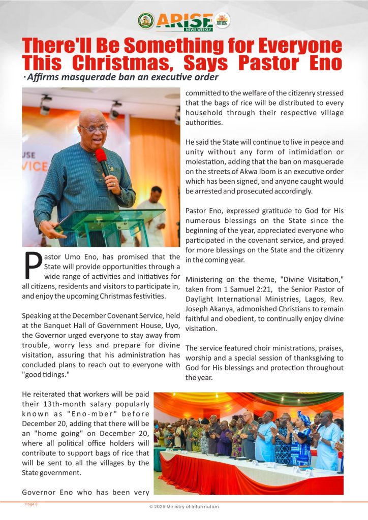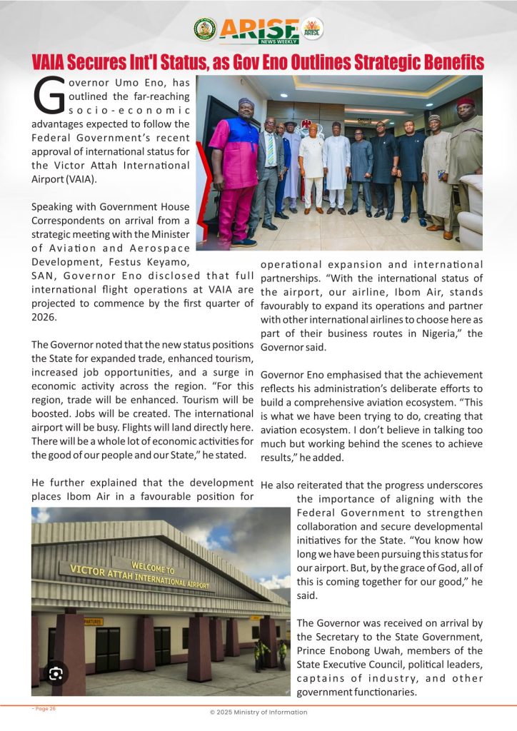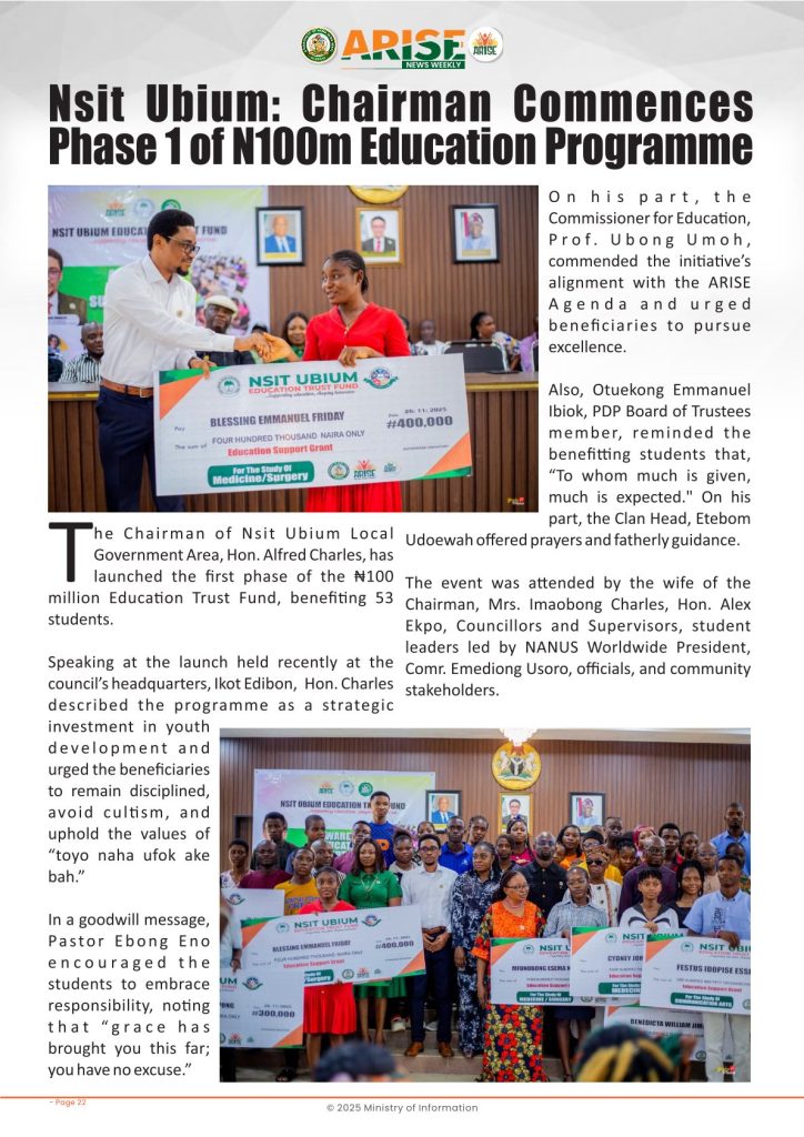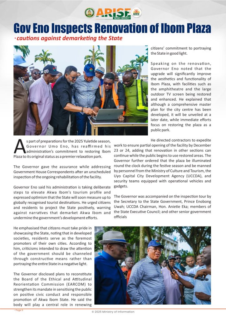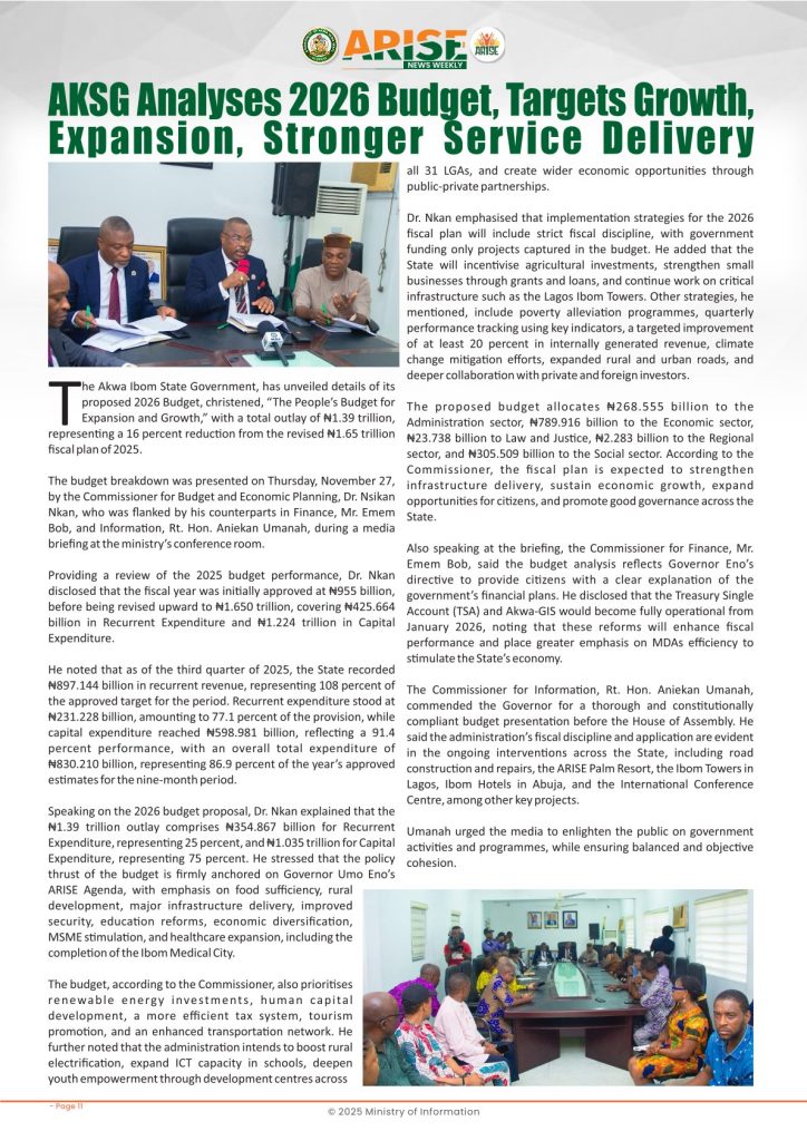 Ministry of InformationWeekly Magazine ARISE News Weekly November 27 – December 3, 2025 V o l . 1 No. 34 By: Editor Date: December 3, 2025 Previous articleUmanah Commends First Lady’s Office for Advancing Rural Devt Through Water Project in AbakNext articleARISE News Weekly December 4 – December 10, 2025 V o l . 1 No. 35 Editorhttp://blog.akwaibomstate.gov.ng LEAVE A REPLY Cancel reply Comment: Please enter your comment! Name:* Please enter your name here Email:* You have entered an incorrect email address! Please enter your email address here Website: Save my name, email, and website in this browser for the next time I comment. Yes, add me to your mailing list Share post: FacebookTwitterPinterestWhatsApp SubscribeI want inI've read and accept the Privacy Policy. Popular ARISE News Weekly – December 25 – December 31, 2025 Vol. 1 No. 38 ARISE News Weekly December 18 – December 25, 2025 Vol. 1 No. 37 ARISE News Weekly December 11 – December 17 , 2025 Vol. 1 No. 36 ARISE News Weekly December 4 – December 10, 2025 V o l . 1 No. 35 Umanah Commends First Lady’s Office for Advancing Rural Devt Through Water Project in Abak More like thisRelated ARISE News Weekly – December 25 – December 31, 2025 Vol. 1 No. 38 Editor - December 31, 2025 ARISE NEWS WEEKLY DECEMBER 30, 2025 VOL_38-1Download ARISE News Weekly December 18 – December 25, 2025 Vol. 1 No. 37 Editor - December 26, 2025 ARISE NEWS WEEKLY DECEMBER 24, 2025 VOL_37Download ARISE News Weekly December 11 – December 17 , 2025 Vol. 1 No. 36 Editor - December 19, 2025 ARISE NEWS WEEKLY December 8, 2025 VOL_35-10Download ARISE News Weekly December 4 – December 10, 2025 V o l . 1 No. 35 Editor - December 11, 2025 ARISE NEWS WEEKLY December 8, 2025 VOL_35Download