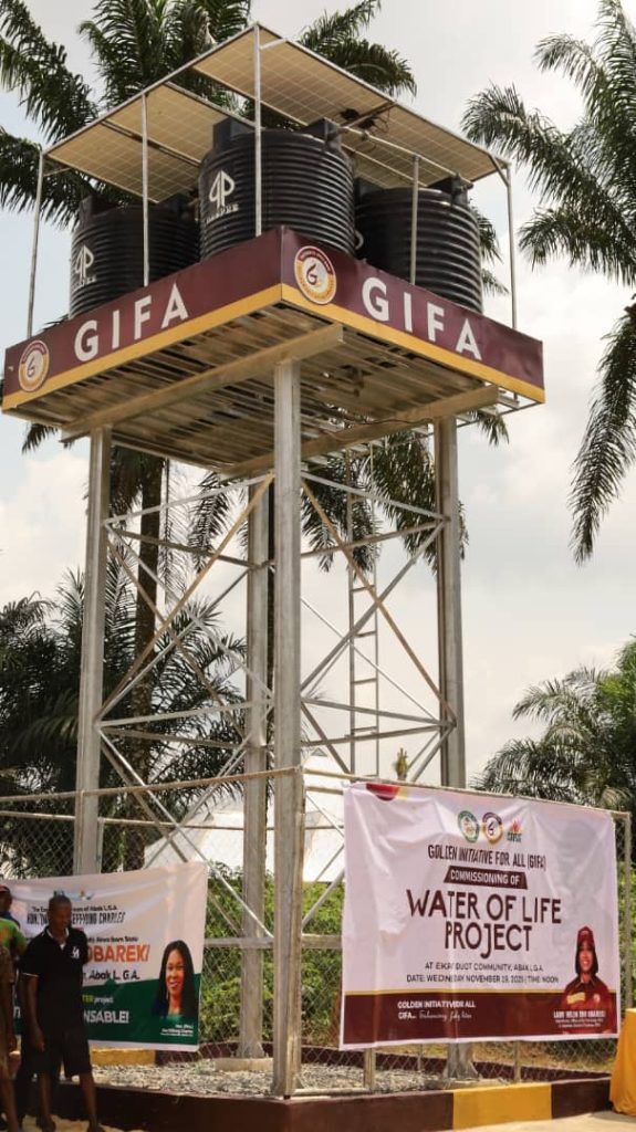 The Commissioner gave the commendation on Wednesday, November 19, during the commissioning of a solar-powered water facility, known as “Water of Life,” at Ekpat Iduot Village in Abak Local Government Area. The project was executed by the Golden Initiative for All (GIFA) under the Office of the First Lady.